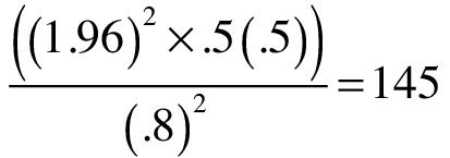 The significant qualitative data generated by the survey provides some latitude for a small overall sample, in that thematic analysis of this rich seam of data enables me to affirm, contest or offer alternative hypotheses to those developed from the quantitative data alone. A further mitigation against the need for a higher sample is the relative homogeneity of the population, all staff, working as they do, in one profession, student unionism. On this basis, the following equation was used to determine the sample size necessary for 95% confidence, .5 standard deviation and a margin of error of +/- 8%: