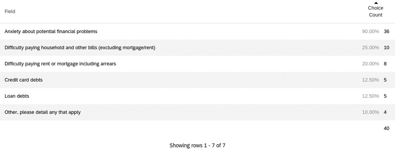 Only 29.58% of respondents reported having experienced financial difficulties or concerns during the pandemic. While unions would want to avoid any of their staff encountering problems in this area, the fact this has been restricted to less than a third of the workforce is perhaps better than could have been expected. In fact, a closer inspection of these concerns (see Table 3) demonstrates that while 90% of those concerned about their finances reported suffering from anxiety, far fewer experienced actual problems with paying bills and/or debt. This is likely testament to the slightly protected short-term position of higher education, while the medium term forecast might well look grim, in-year losses were more modest, certainly in comparison to other sectors, and furlough prevented any large-scale redundancies.[17],[18]