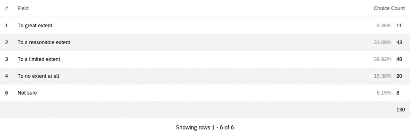 1)It is conducive with an interpretivist approach: for every member of staff who received a communication during the pandemic its influence on their motivation is likely to have varied, depending on a range of factors including their pre-existing motivation and their personal circumstances; for example, in relation to their finances, health and/or ambition. Therefore, in order to understand the influence that communications have on staff we must seek to understand more about them as individuals. Contribution Analysis enables such an approach, which on this occasion has been achieved, in part, by including questions in the survey device on pre-pandemic opinions across a range of factors and on the pandemic’s financial impact on individuals.