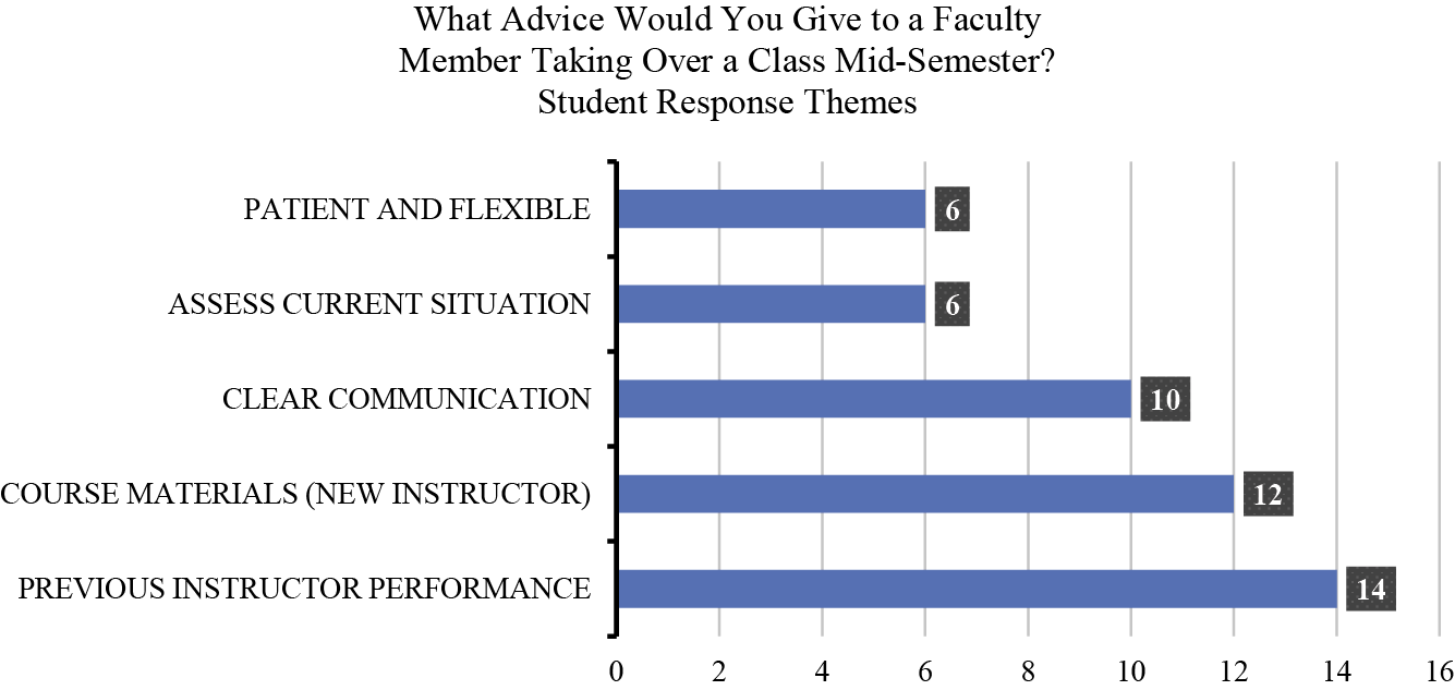 The overarching objective of this research is to provide insight on this circumstance to better guide administrators and faculty members who are faced with mid-semester faculty change so that students can still succeed. The paper will examine the literature on teaching dilemmas, discuss the research methodology used to address the two research questions, and conclude with the results and practical advice for faculty and administrators.