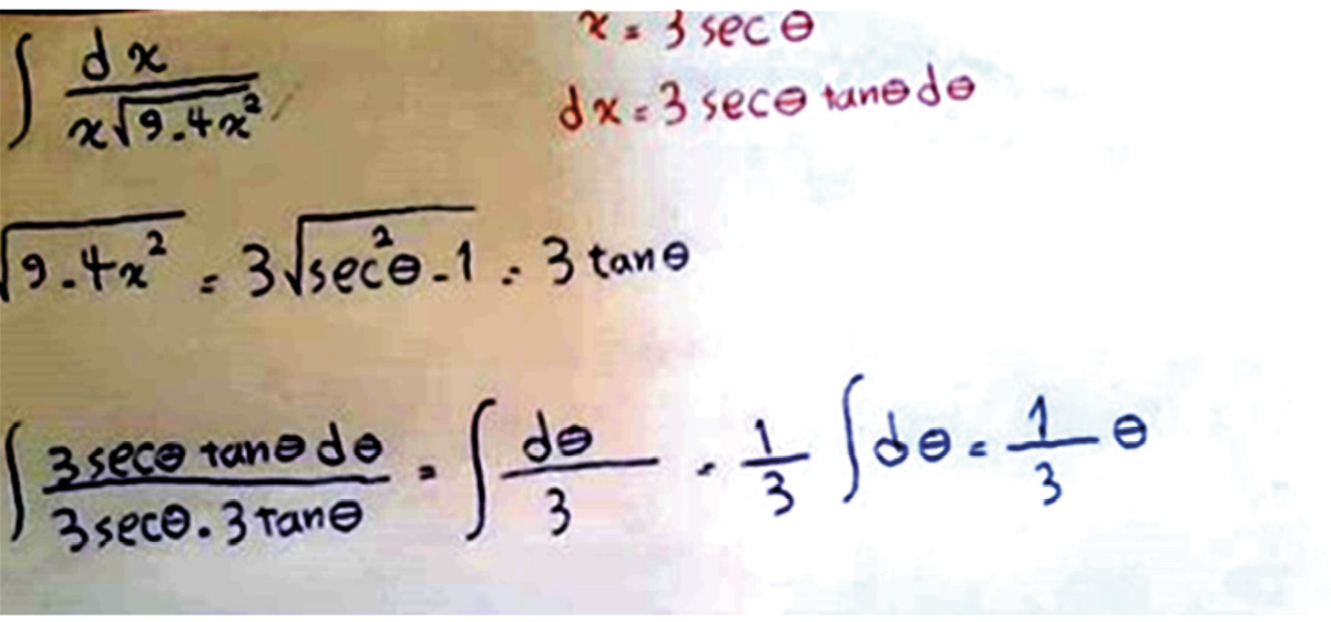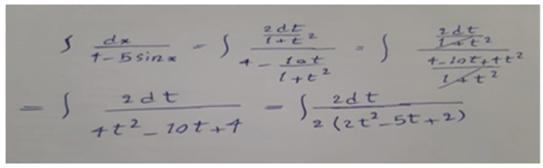 So, from this point on, he/she was not able to solve the problem and left it. This is because solving the integral is a method of trigonometric substitution. It must be first converted into an alliance; then a trigonometric substitute is used. In other words, as the next step, the student replaced trigonometry, thus forgetting this step and leaving the problem.